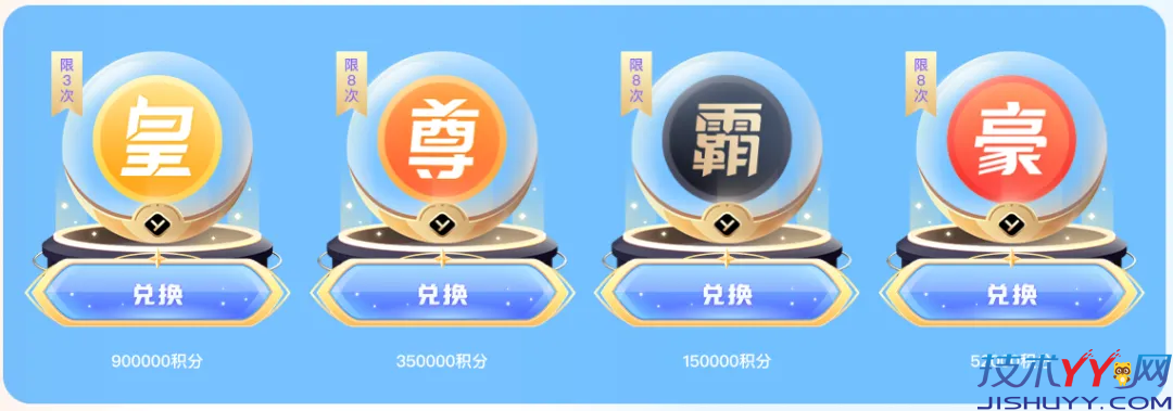皇图标限制全服兑换3次,尊图标限制全服兑换8次,霸图标限制全服兑换8次,豪图标限制全服兑换8次!