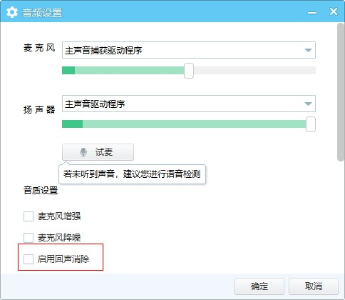 情况二:与其他用户语音时,对方开启了音响外放声音,对方的麦克风又将您的声音传回了给您,此时可让对方闭麦/勾选回音消除解决。