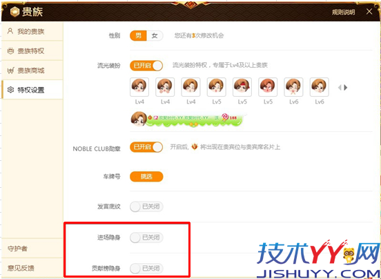 YY国王/公爵贵族如何设置进场隐身/贡献排行隐身