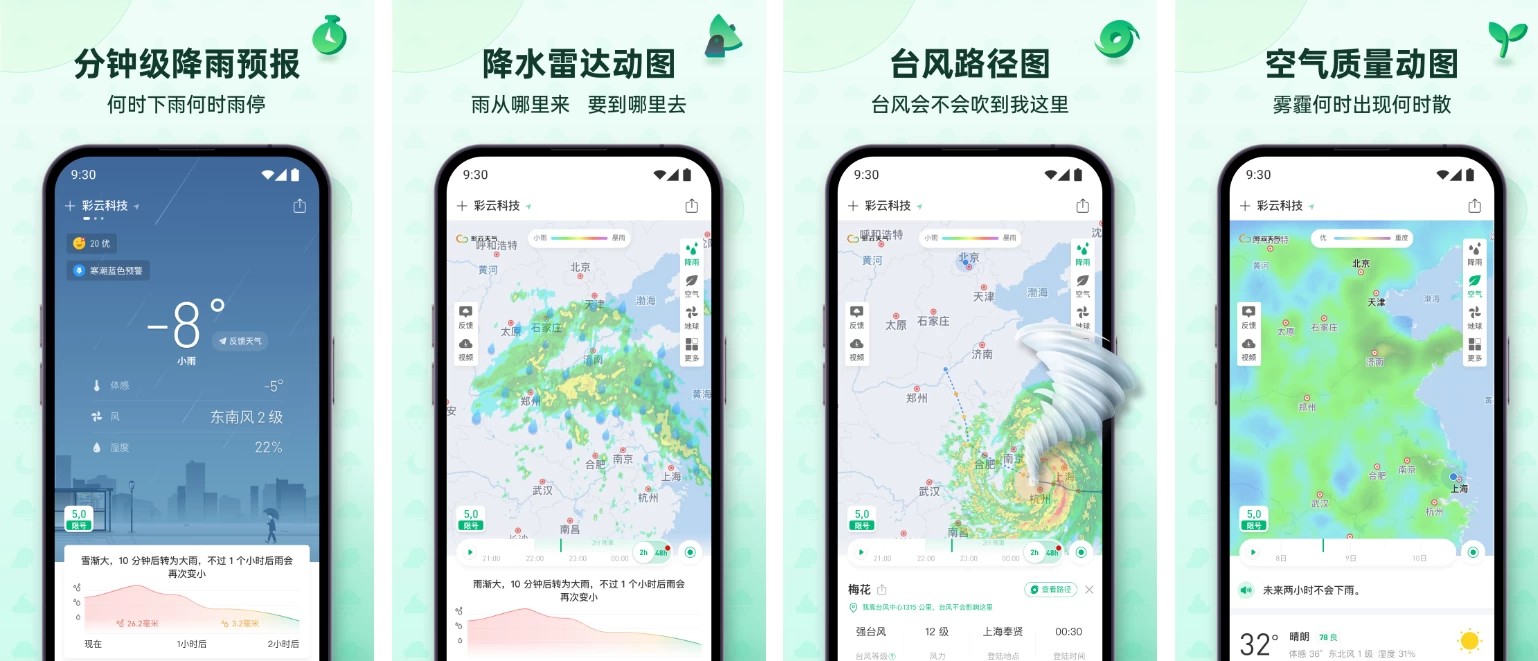 彩云天气App,专业天气预报应用,基于挖掘中央气象局的全国雷达数据,利用人工智能算法进行分钟级降水预报的天气预报应用,能实时预测分钟级别的天气实况、降雨实况、预警信息、未来几天预报趋势信息。
