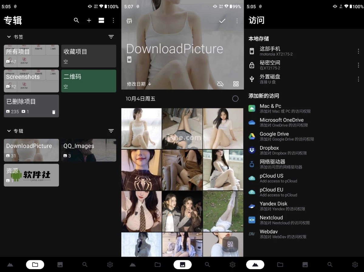主要功能包括:云存储集成、安全文件保险箱、GIF播放支持、图片压缩与优化等。