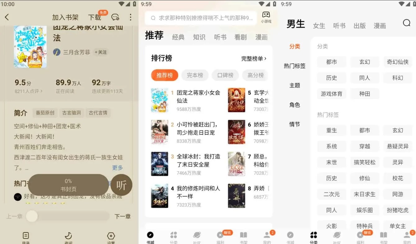 高级版(免登录或登陆) 看书听书免广告、听书支持离线下载 去除我的页面:游戏推广、订单管理、领红包悬浮广告 小书资源丰富,包含各类精品图书 极致阅读体验,舒适流畅的阅读器