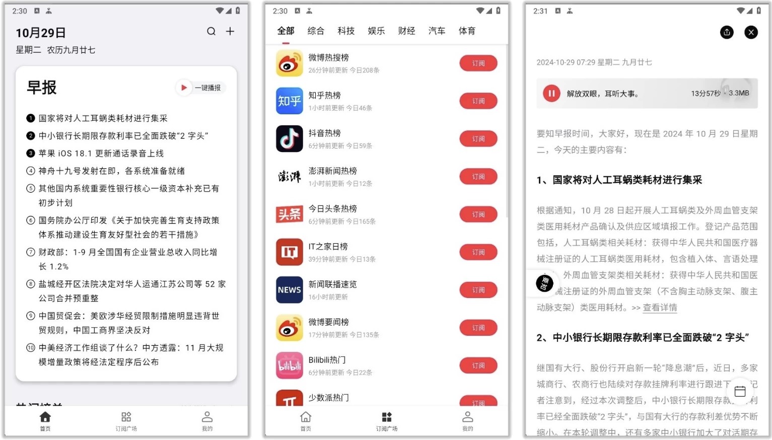 语音播报功能让用户在忙碌时可以听取每日要闻,解放双眼。