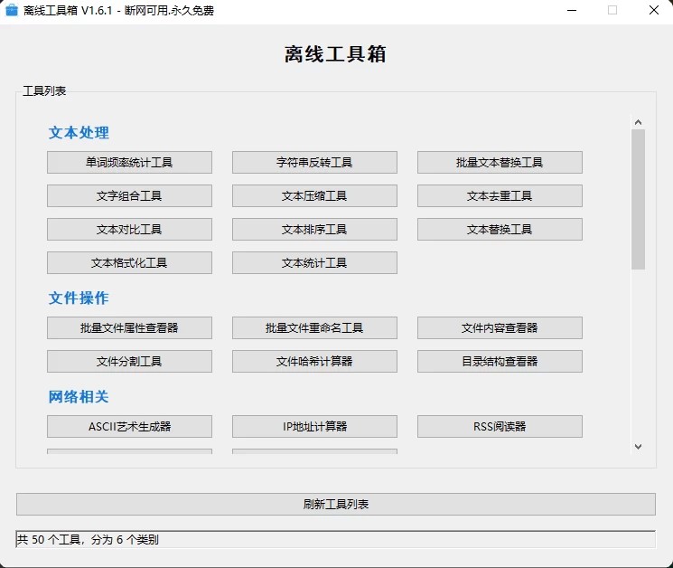 而这款工具箱的设计理念就是”断网可用”,所有功能都集成在本地,无需联网即可正常运行。