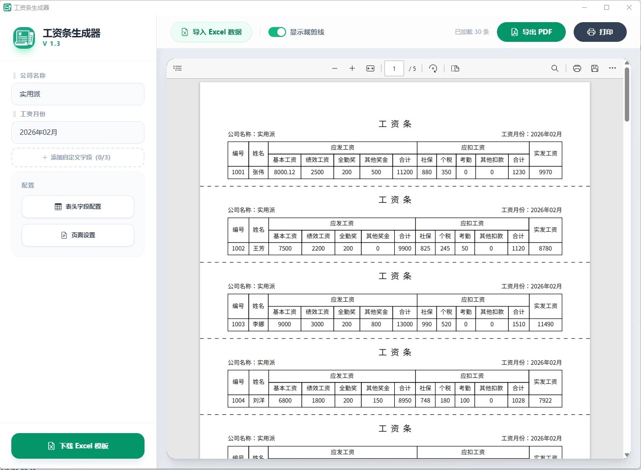 工资条生成器 v1.3