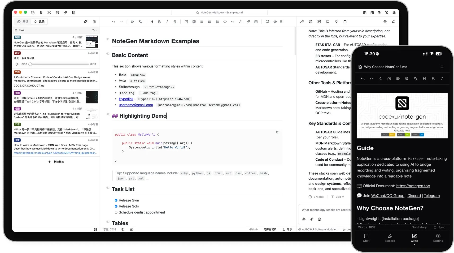 无论是快速记忆灵感,还是系统化汇总信息,NoteGen 都能为用户提供灵活又高效的解决方案,让知识整理变得更加轻松、便捷。