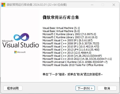 随着时代的进步,XP系统已经不再被官方支持,XP时代遗留下来的VB运行库,理应该不被再使用,所以本站剔除了一些旧版运行库,只保留C 运行库。另外office2010运行库,不需要运行库office2010版本照样能使用,所以同样移除。